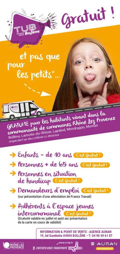 Bonne nouvelle pour les habitants de la Communauté de Communes Rhône Lez Provence : l’accès au TUB est gratuit pour certains usagers, sous conditions :