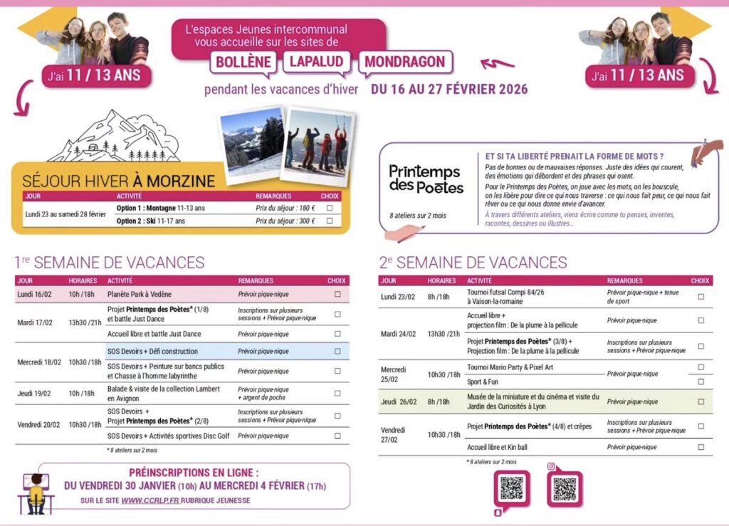 PROGRAMME 11/13 ANS VACANCES D’HIVER ESPACE JEUNES INTERCOMMUNAL 28 Jan 2026 | Actualités-appli, Actualités-Site, Application Screenshot Screenshot