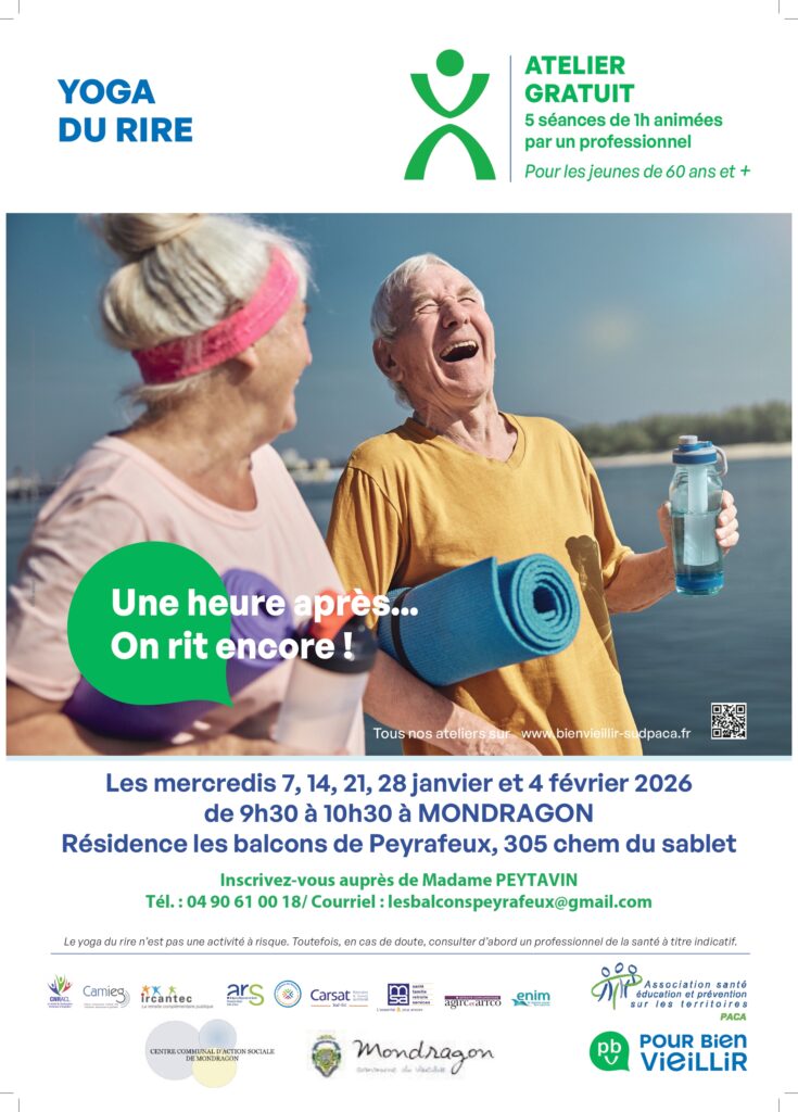 YOGA DU RIRE – RÉSIDENCE LES BALCONS DE PEYRAFEUX – SUR INSCRIPTION 8 Déc 2025 | Actualités-appli, Actualités-Site, Application inscriptions : 04.90.61.00.18 ou par mail *protected email*">*protected email*